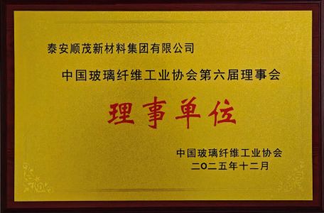 近日,从中国玻璃纤维工业协会传来喜讯:泰安顺茂新材料集团有限公司正式当选为协会第六届理事会理事单位,并获得协会颁发的荣誉牌匾。这一殊荣不仅标志着行业对我公司综合实力与技术创新能力的高度认可,也象征着公司在玻璃纤维领域的影响力和责任感迈上了新台阶。